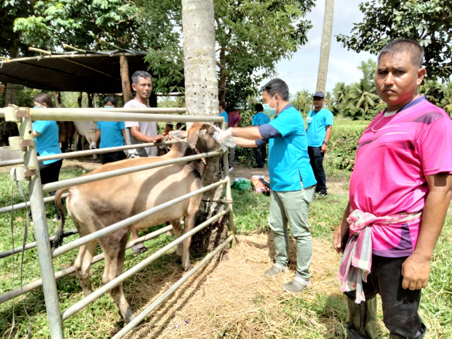 วันที่ 16 พฤศจิกายน 2565 เวลา 09.45 น. นายศิริสินธุ์ เพียรแก้ว ปศุสัตว์จังหวัดปัตตานี พร้อมด้วย กลุ่มยุทธศาสตร์และสารสนเทศการปศุสัตว์,กลุ่มพัฒนาสุขภาพสัตว์ และปศุสัตว์อำเภอ 12 อำเภอ kick-off รณรงค์ฉีดวัคซีนป้องกันโรคปากและเท้าเปื่อย (FMD) และโรคเฮโมรายิก เซฟติกซีเมีย (Hemorrhagic Septicemia) และปล่อยขบวนเจ้าหน้าที่ผู้ปฏิบัตงานการทำวัคซีน ฯ ในพื้นที่ หมู่ 5 ตำบลบาราเฮาะ อำเภอเมืองปัตตานี