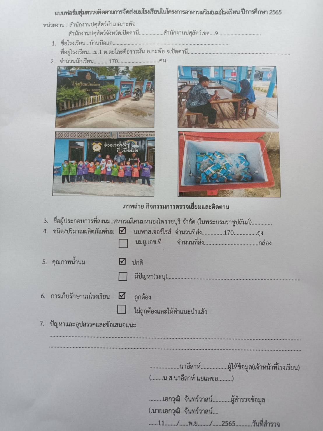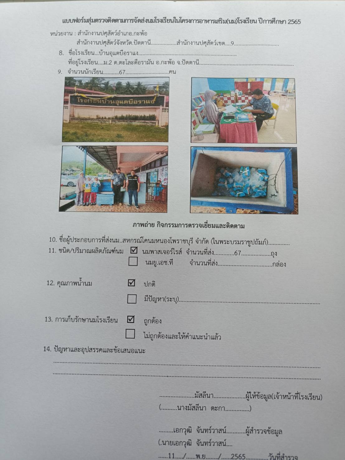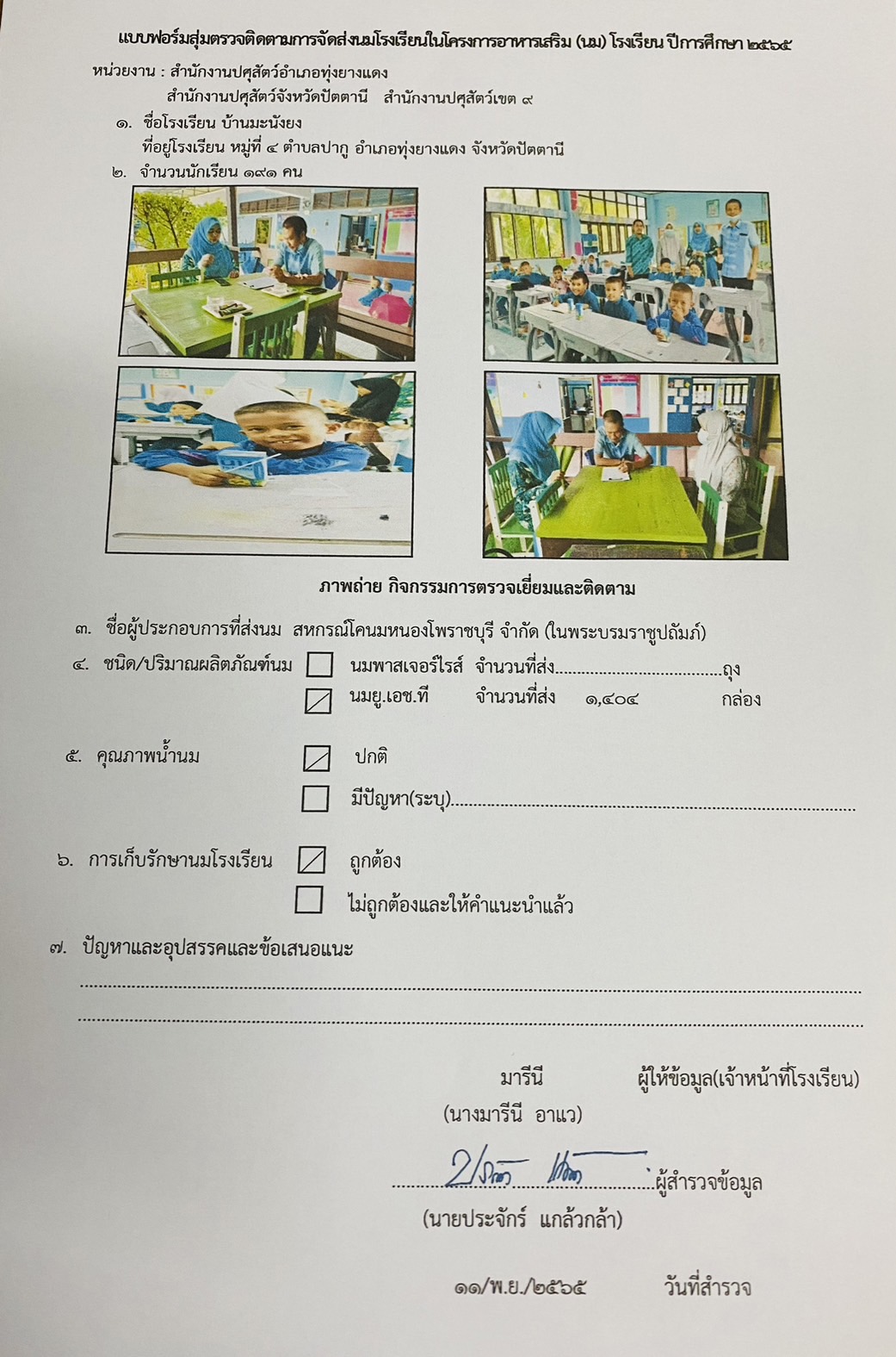 ปศุสัตว์อำเภอมายอ ติดตามโครงการอาหารเสริม (นม) โรงเรียน ประจำปี 2565