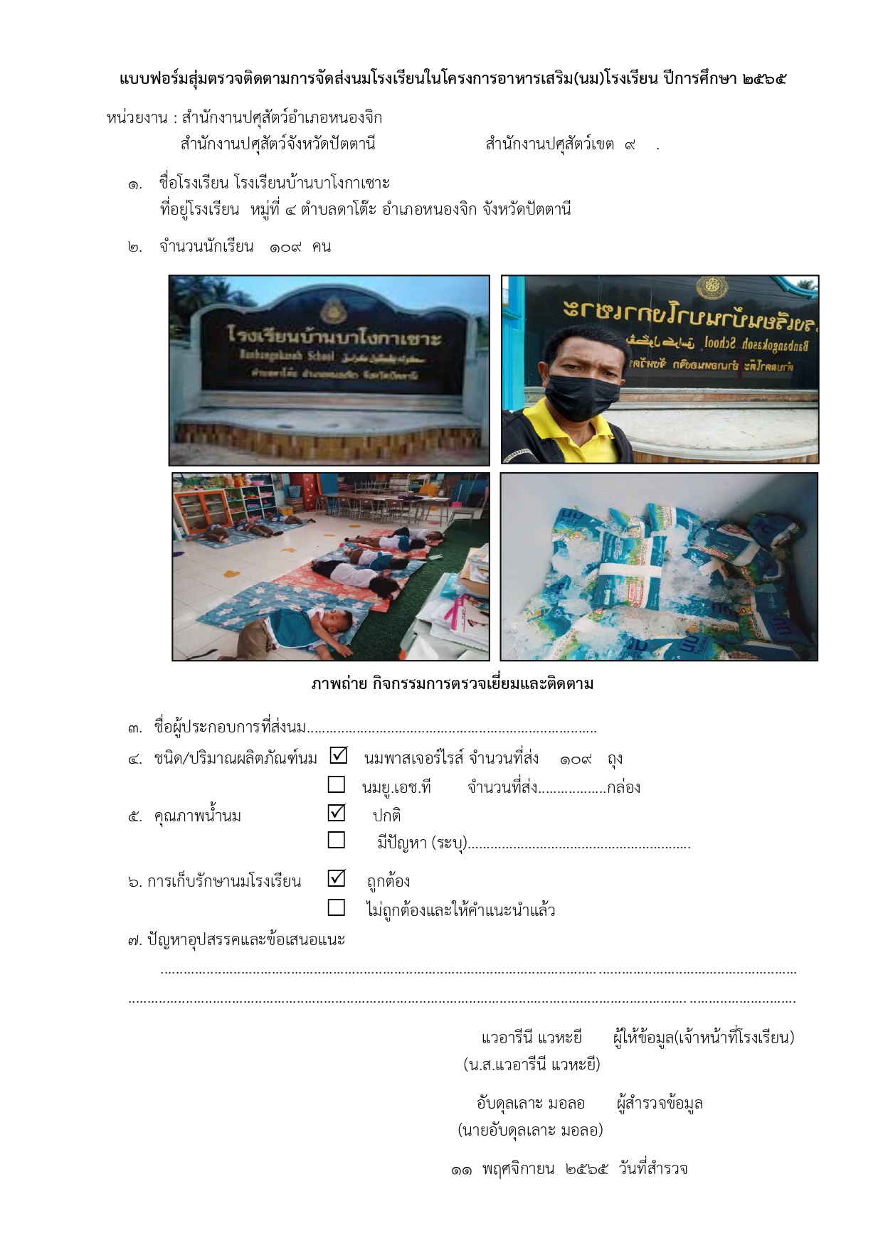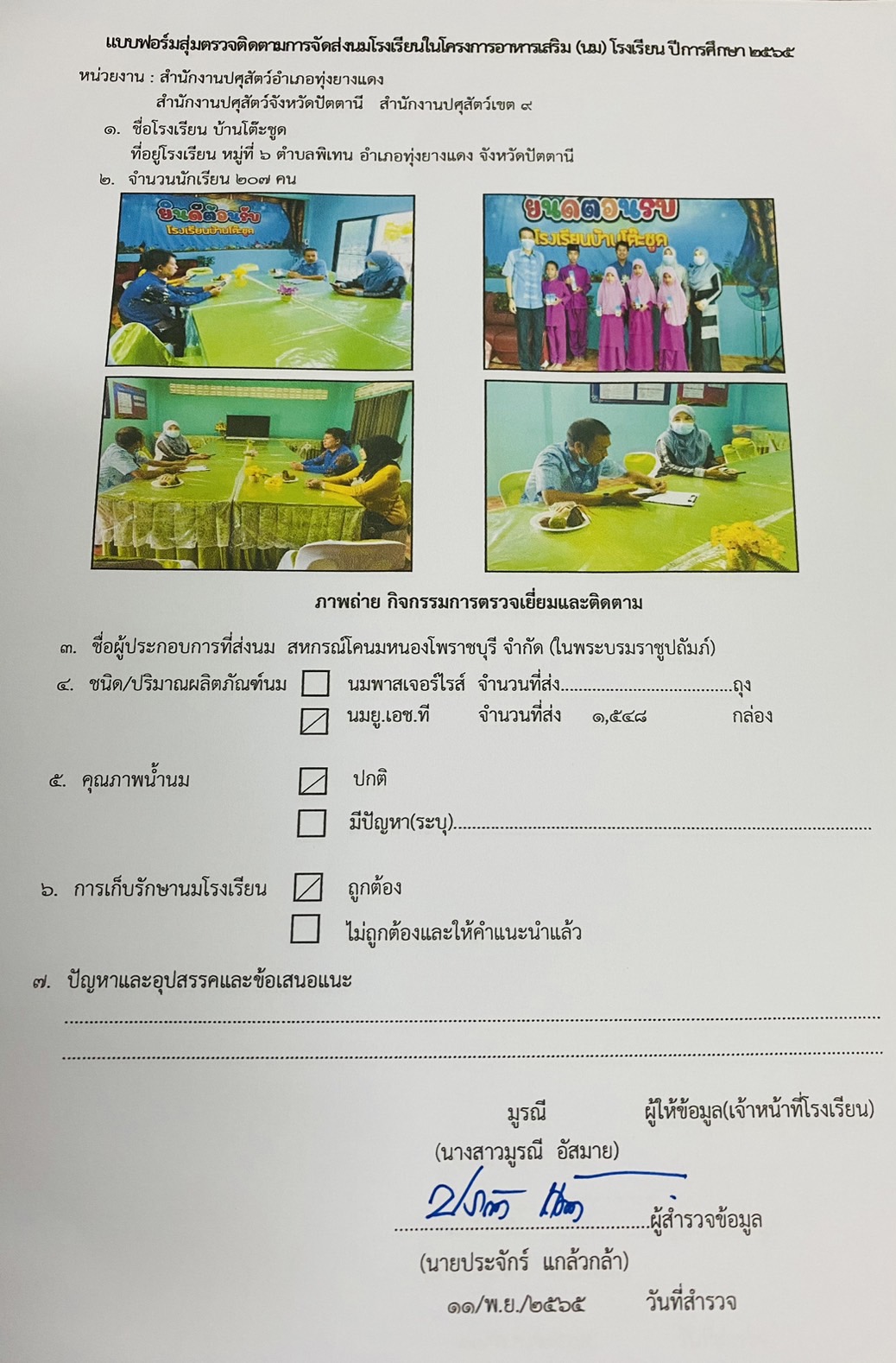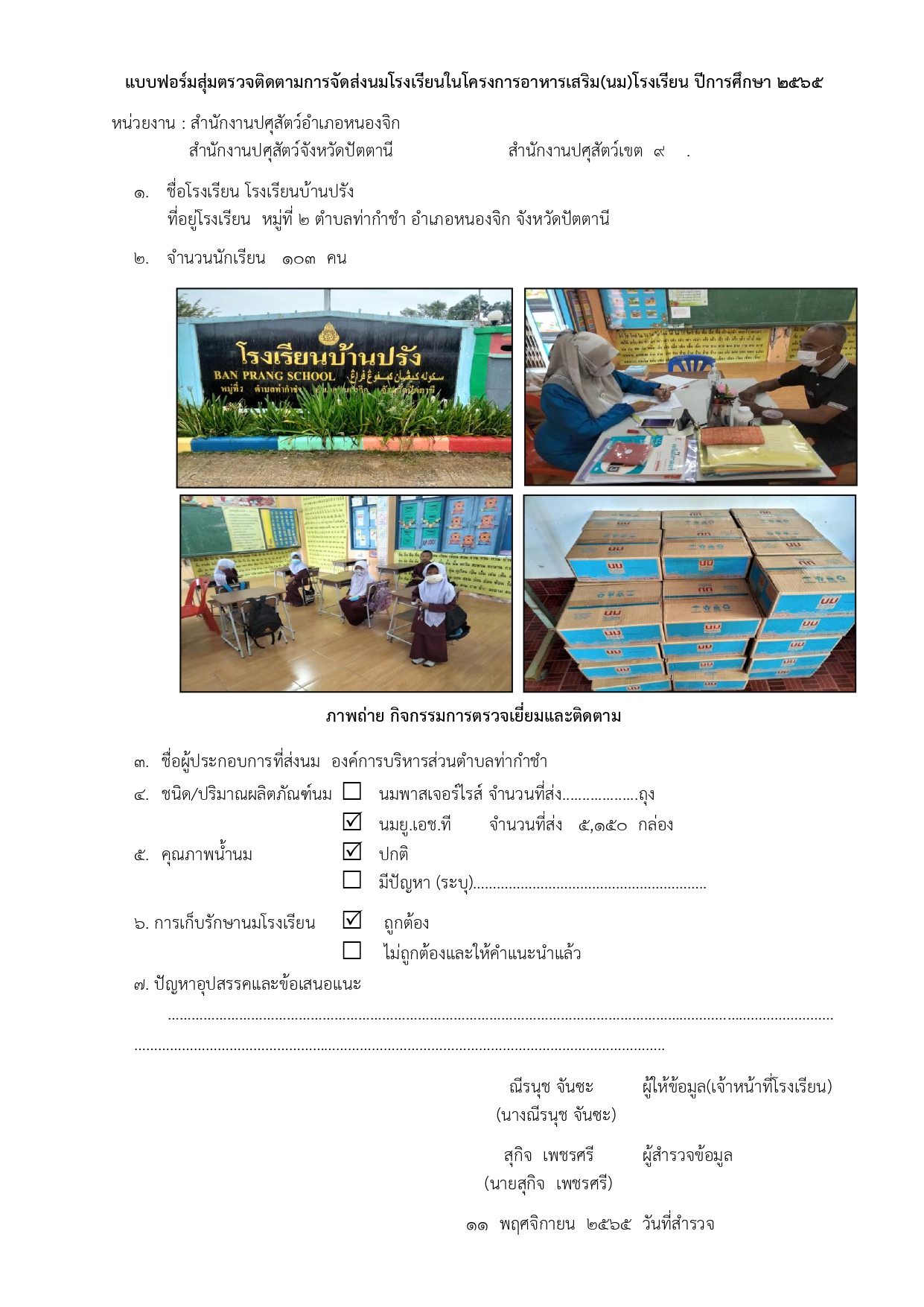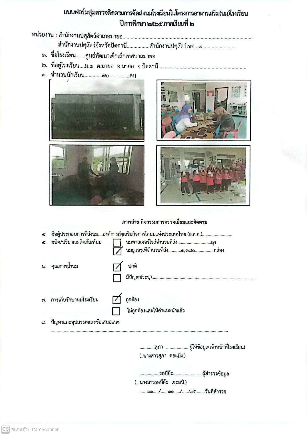 ปศุสัตว์อำเภอมายอ ติดตามโครงการอาหารเสริม (นม) โรงเรียน ประจำปี 2565