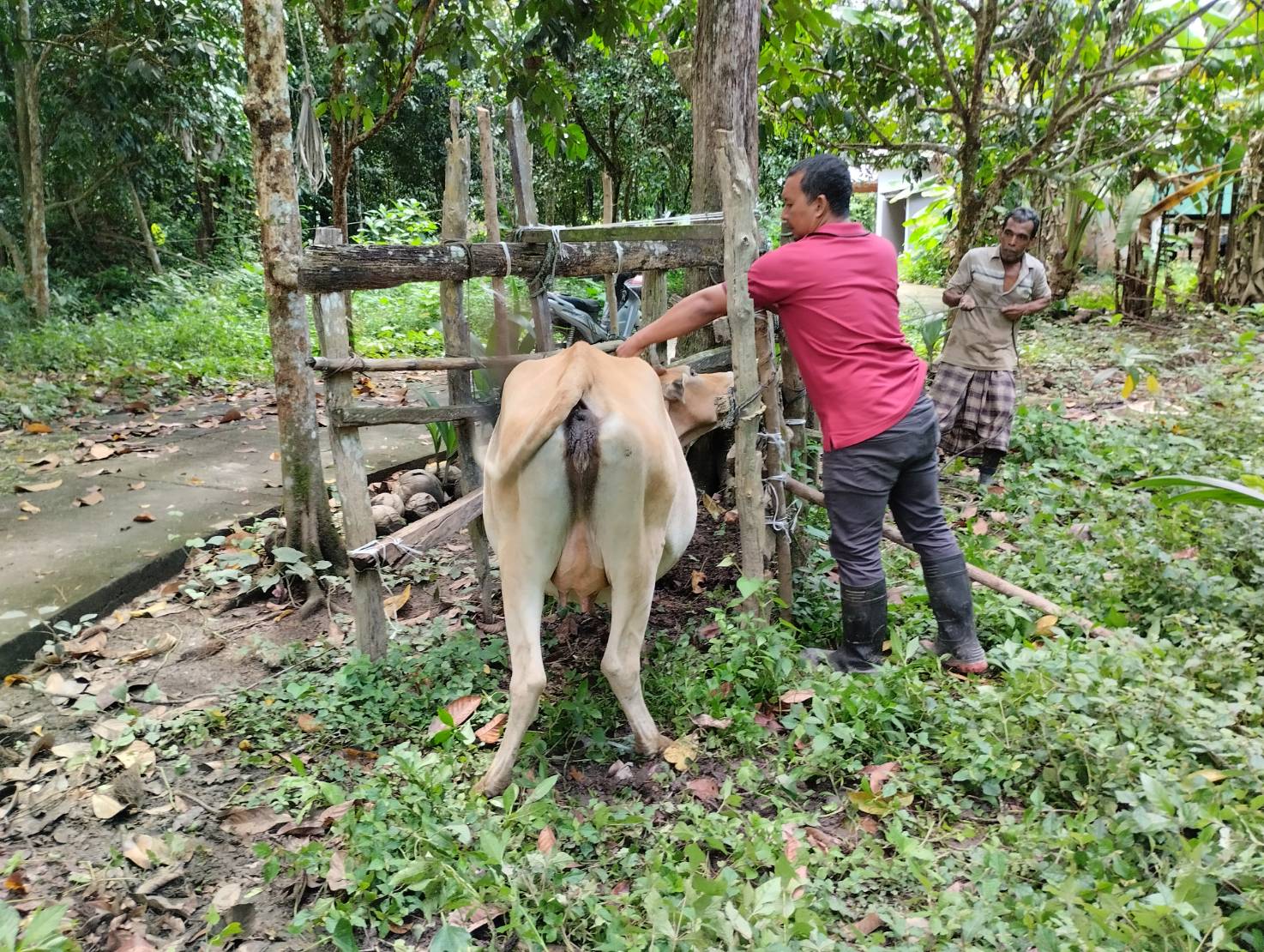 นายอุสมาน หะยีแยนา ปศุสัตว์อำเภอยะรัง รักษาราชการแทนปศุสัตว์อำเภอกะพ้อ มอบหมายให้ นายอับดุลซาแล มะหามะ ช่วยงานสัตวบาล เจ้าหน้าที่ปศุสัตว์อำเภอกะพ้อ ดำเนินการฉีดวัคซีนป้องกันโรคระบาดในสัตว์ปากเท้าเปื่อย ในโค – กระบือ ในพื้นที่เสี่ยง พร้อมประชาสัมพันธ์การเฝ้าระวังโรคปากและเท้าเปื่อย ในพื้นที่ หมู่ที่ 7 ต.ตะโละดือรามัน อ.กะพ้อ จ.ปัตตานี