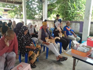 วันที่ 11กันยายน 2568 เวลา 09.30 น. นายจักรพงศ์ อินต๊ะภา เจ้าพนักงานสัตวบาลชำนาญงาน รักษาราชการแทนปศุสัตว์อำเภอสายบุรี มอบหมายให้นายคอลีมิง สูหลง เจ้าพนักงานสัตวบาล พร้อมเจ้าหน้าที่ปศุสัตว์อำเภอฯ ร่วมกับองค์การบริหารส่วนตำบลบางเก่า ดำเนินการรณรงค์ฉีดวัคซีนป้องกันโรคพิษสุนัขบ้า ประจำปี 2568 ภายใต้โครงการสัตว์ปลอดโรค คนปลอดภัย จากโรคพิษสุนัขบ้า ตามพระปณิธานศาสตราจารย์ ดร.สมเด็จเจ้าฟ้าฯ กรมพระศรีสวางควัฒน วรขัตติยราชนารี ให้กับสัตว์เลี้ยงในพื้นที่ ตำบลบางเก่า อำเภอสายบุรี จังหวัดปัตตานี โดยฉีดวัคซีนแมว ณ อาคารอเนกประสงค์องค์การบริหารส่วนตำบลบางเก่า อ.สายบุรี จ.ปัตตานี ผลการปฏิบัติงานเป็นไปด้วยความเรียบร้อย