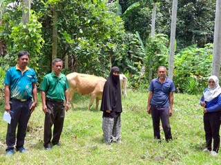 วันที่ 17 กันยายน 2568 เวลา 09.00 น. นายศิริสินธุ์ เพียรแก้ว ปศุสัตว์จังหวัดปัตตานี มอบหมายให้กลุ่มส่งเสริมและพัฒนาการปศุสัตว์ ร่วมกับสำนักงานปศุสัตว์อำเภอยะรัง และคณะกรรมการดำเนินงานโครงการธนาคารโคกระบือเพื่อเกษตรกร ตามพระราชดำริ ลงพื้นที่ติดตามและประเมินราคาโค-กระบือ โครงการธนาคารโค-กระบือเพื่อเกษตรกร ตามพระราชดำริ มีความประสงค์จะส่งมอบลูกโค - กระบือ ตัวที่ 1 อายุครบ 18 เดือนขึ้นไป ให้แก่โครงการฯ ตามระเบียบกรมปศุสัตว์ จำนวนเกษตรกรทั้งหมด 7 ราย โค จำนวน 12 ตัว ในพื้นที่อำเภอยะรัง จังหวัดปัตตานี ผลการปฏิบัติเป็นไปด้วยความเรียบร้อย