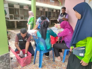 วันที่ 25 กันยายน 2568 เวลา 09.00 น. นายแดนชัย นุใหม่ นายสัตวแพทย์ชำนาญการพิเศษ รักษาราชการแทนปศุสัตว์อำเภอเมืองปัตตานี พร้อมเจ้าหน้าที่สำนักงานปศุสัตว์อำเภอ ร่วมกับเจ้าหน้าที่กองสาธารณะสุขและสิ่งแวดล้อมตำบลตันหยงลุโละ ดำเนินการฉีดวัคซีนป้องกันโรคพิษสุนัขบ้า ภายใต้โครงการสัตว์ปลอดโรค คนปลอดภัยจากโรคพิษสุนัขบ้า ปีงบประมาณ 2568 ตาม พระปณิธาน ศาสตราจารย์ ดร.สมเด็จพระเจ้าน้องนางเธอ เจ้าฟ้าจุฬาภรณวลัยลักษณ์ อัครราชกุมารี กรมพระศรีสวางควัฒน วรขัตติยราชนารีในพื้นที่ ม.1 ม.2 และ ม.3 ต.ตันหยงลุโละ อ.เมืองปัตตานี ผลการปฏิบัติงาน เป็นไปด้วยความเรียบร้อย
